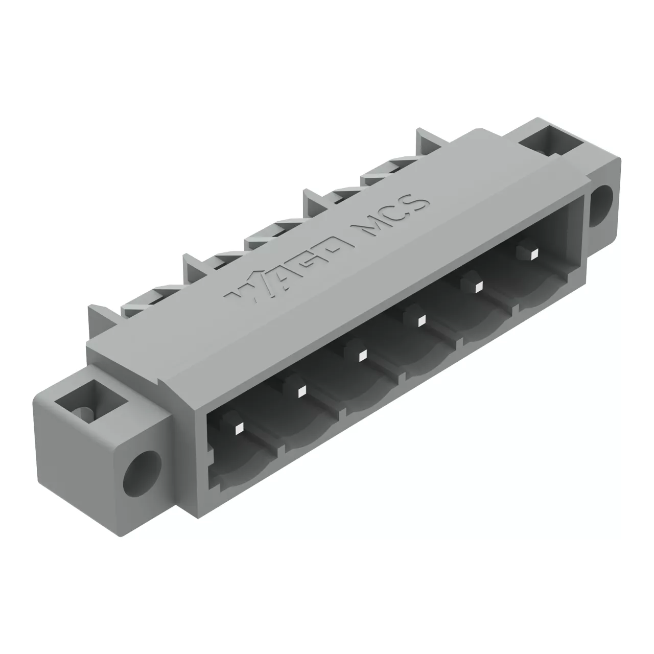 wtyk THT; pin lutowniczy 1,2 x 1,2 mm; konstrukcja kątowa; kołnierz mocujący; raster 5 mm; 6-bieg.; szary