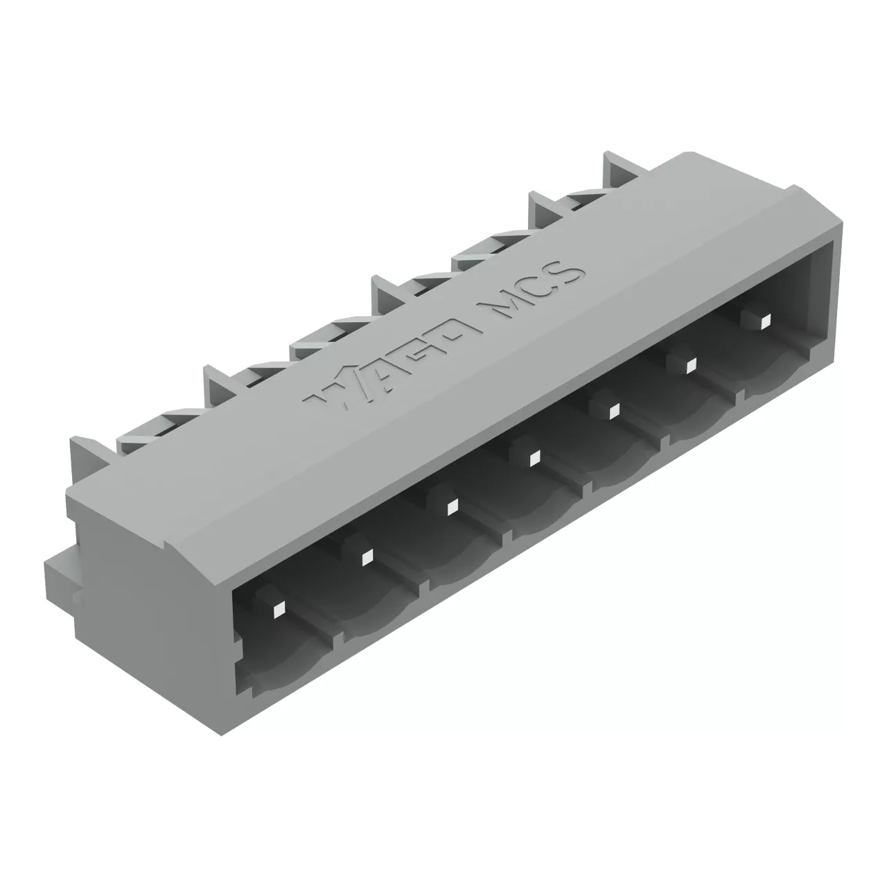 wtyk THT; pin lutowniczy 1,2 x 1,2 mm; konstrukcja kątowa; raster 5 mm; 7-bieg.; szary