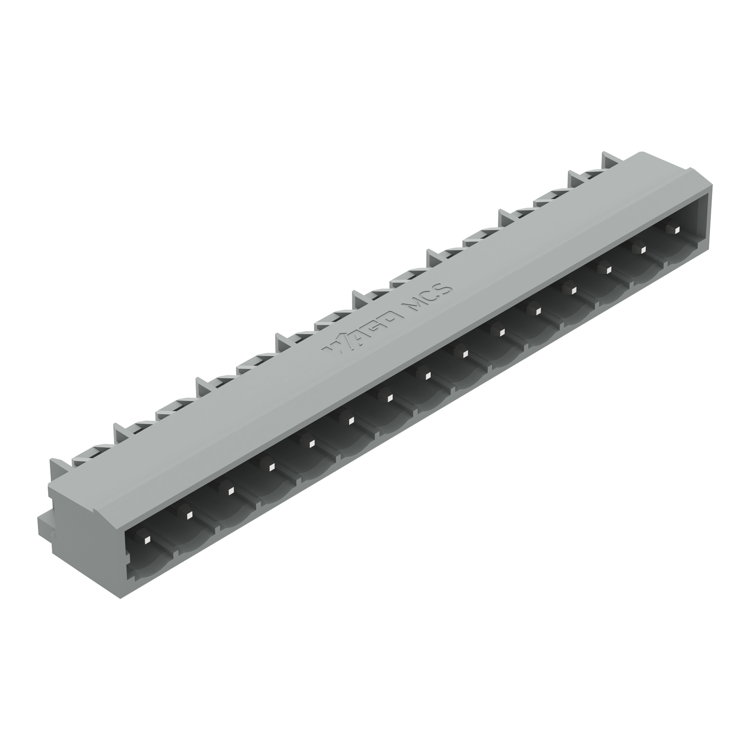 wtyk THT; pin lutowniczy 1,2 x 1,2 mm; konstrukcja kątowa; raster 5 mm; 15-bieg.; szary