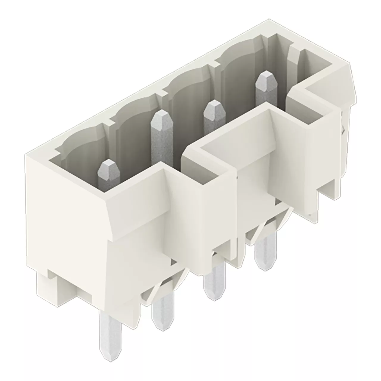 wtyk THT; pin lutowniczy 1,2 x 1,2 mm; konstrukcja prosta; 100% ochrona przed błędnym połączeniem; wyprzedzający styk PE; raster 5 mm; 4-bieg.; jasnoszary
