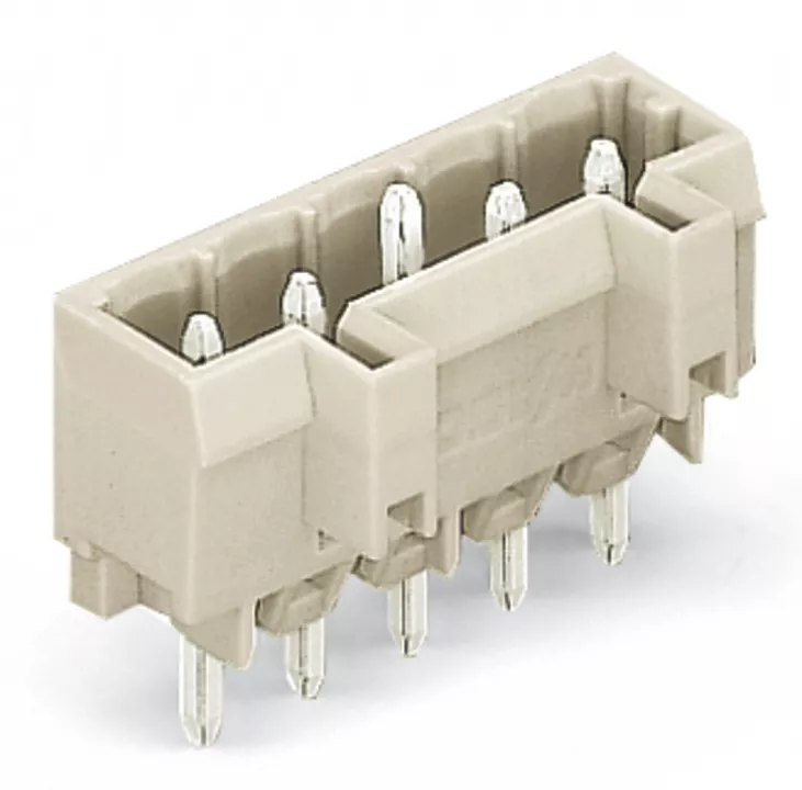 wtyk THT; pin lutowniczy 1,2 x 1,2 mm; konstrukcja prosta; 100% ochrona przed błędnym połączeniem; raster 5 mm; 5-bieg.; jasnoszary