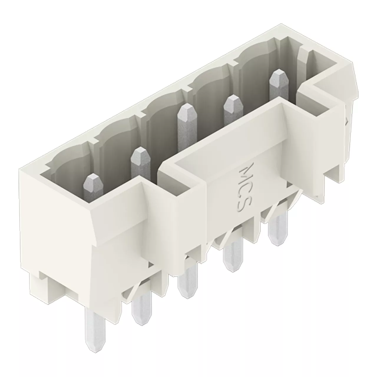 wtyk THT; pin lutowniczy 1,2 x 1,2 mm; konstrukcja prosta; 100% ochrona przed błędnym połączeniem; wyprzedzający styk PE; raster 5 mm; 5-bieg.; jasnoszary