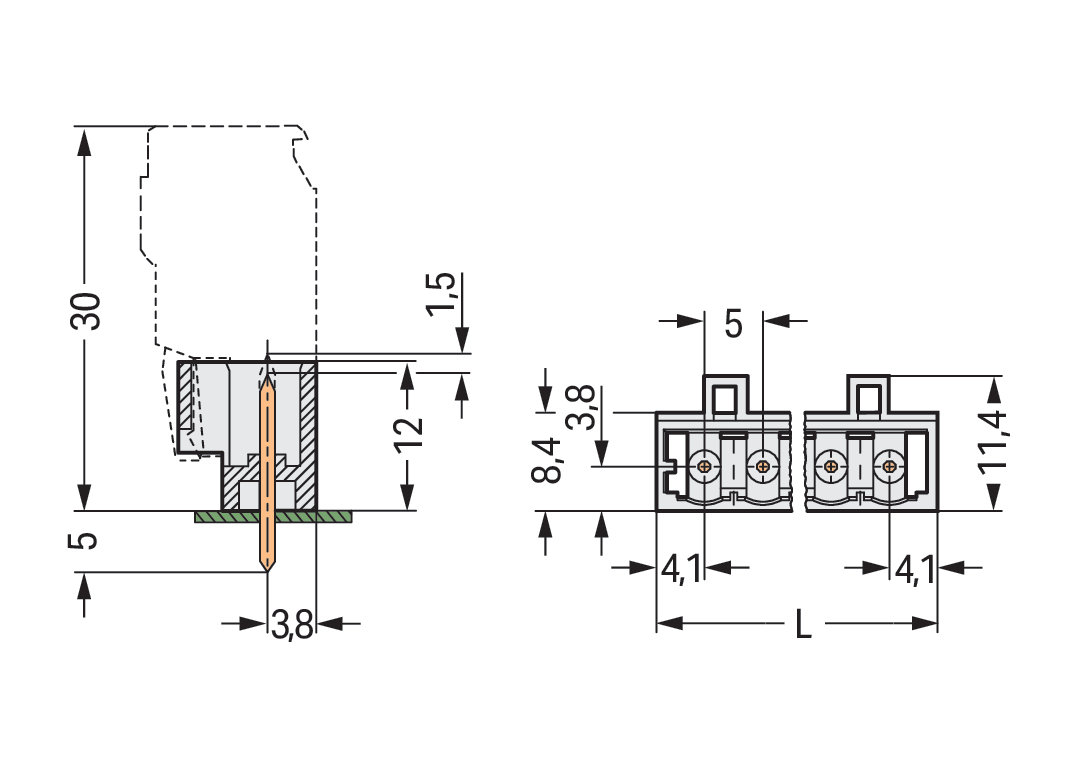 Kąt płytka drukowana / wtyk: