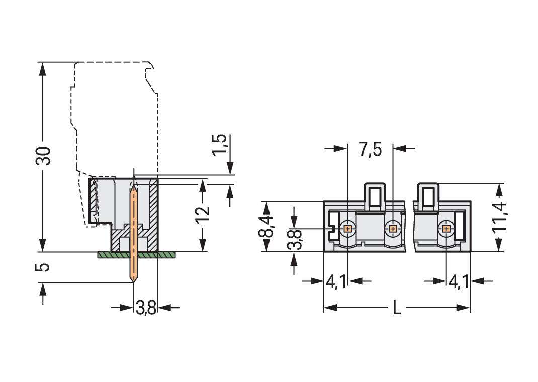| Kąt płytka drukowana / wtyk: |