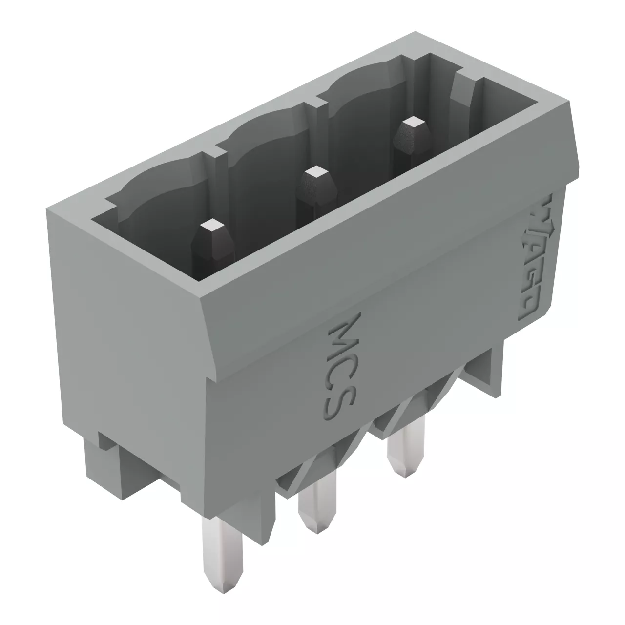 wtyk THT; pin lutowniczy 1,2 x 1,2 mm; konstrukcja prosta; raster 5 mm; 3-bieg.; szary