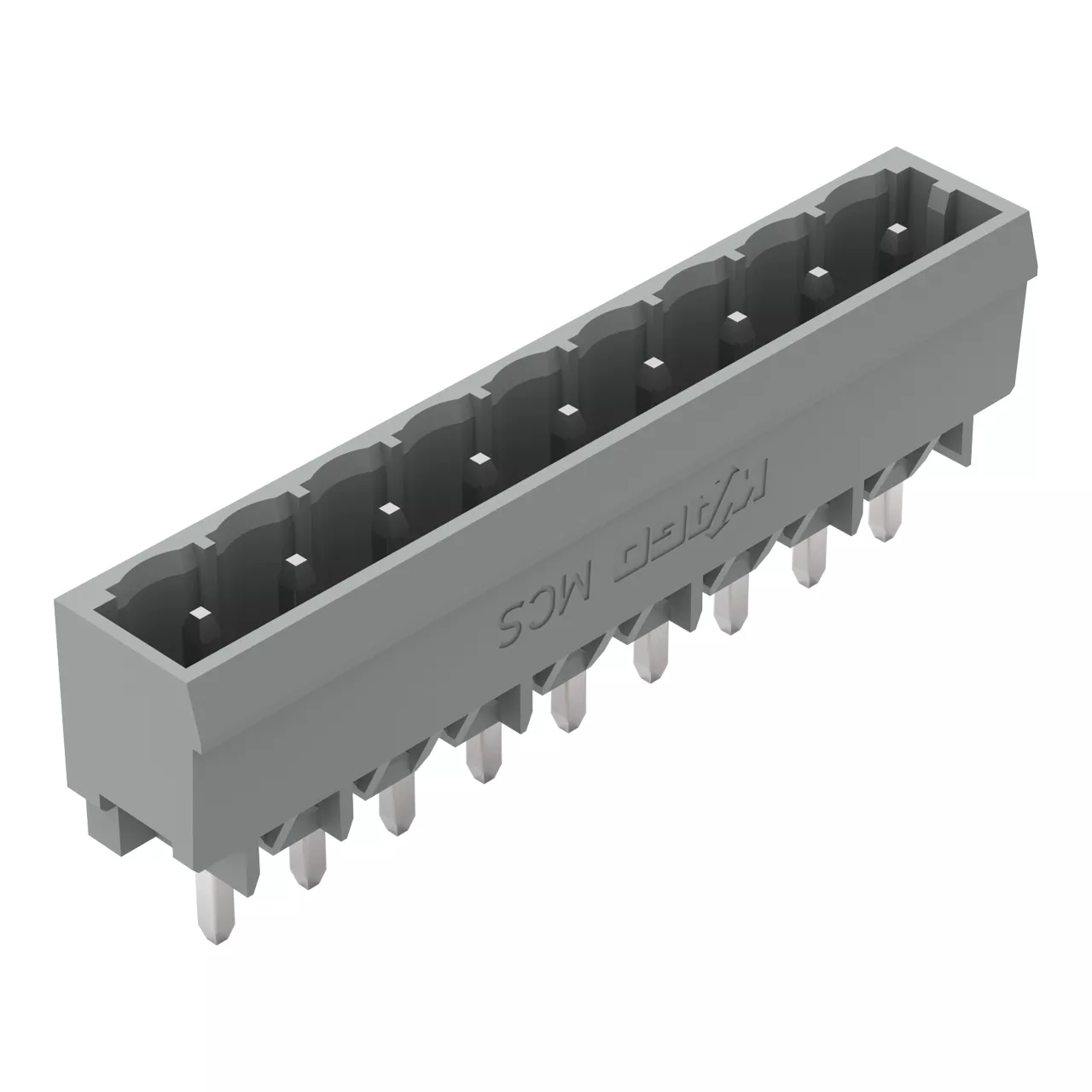 wtyk THT; pin lutowniczy 1,2 x 1,2 mm; konstrukcja prosta; raster 5 mm; 9-bieg.; szary