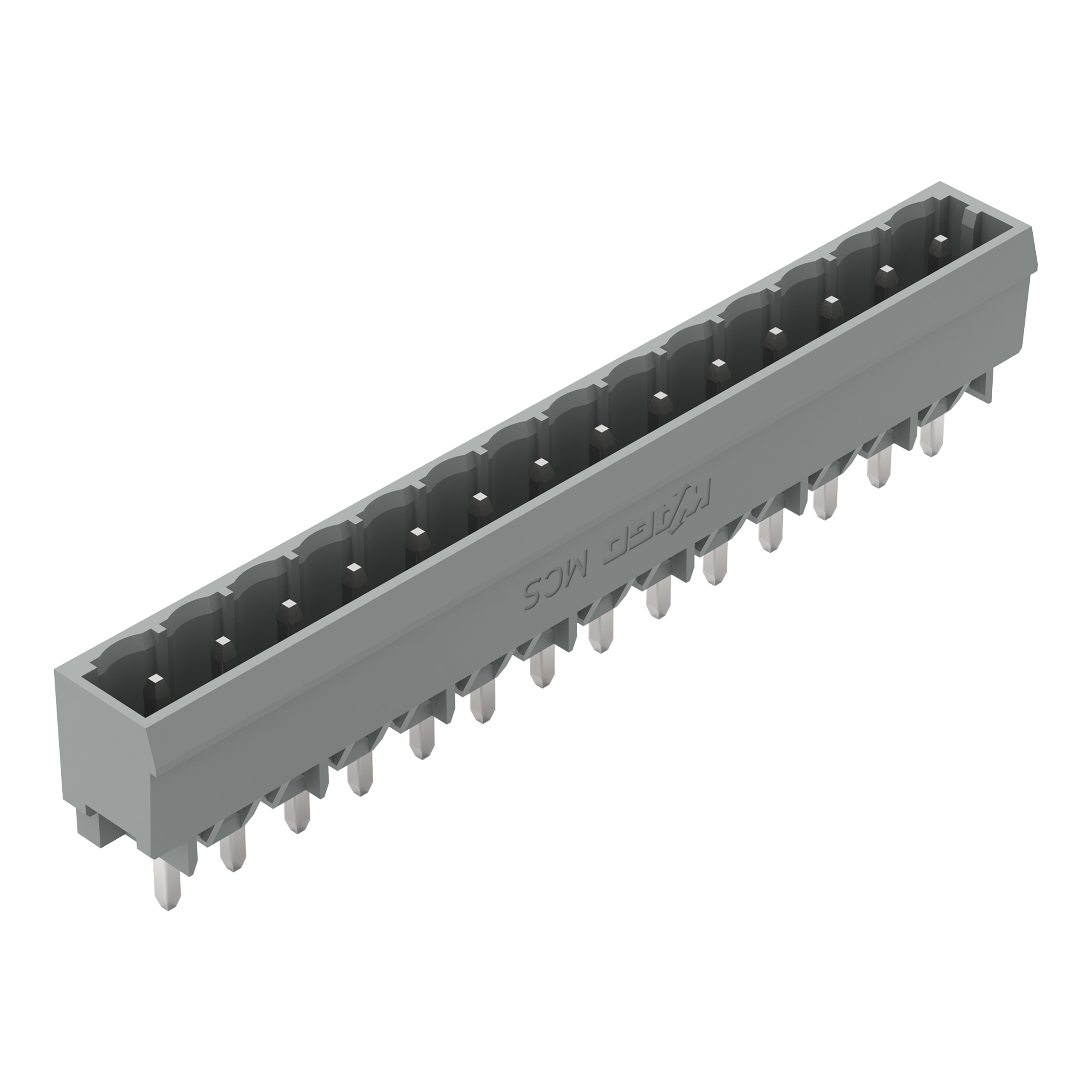 wtyk THT; pin lutowniczy 1,2 x 1,2 mm; konstrukcja prosta; raster 5 mm; 14-bieg.; szary
