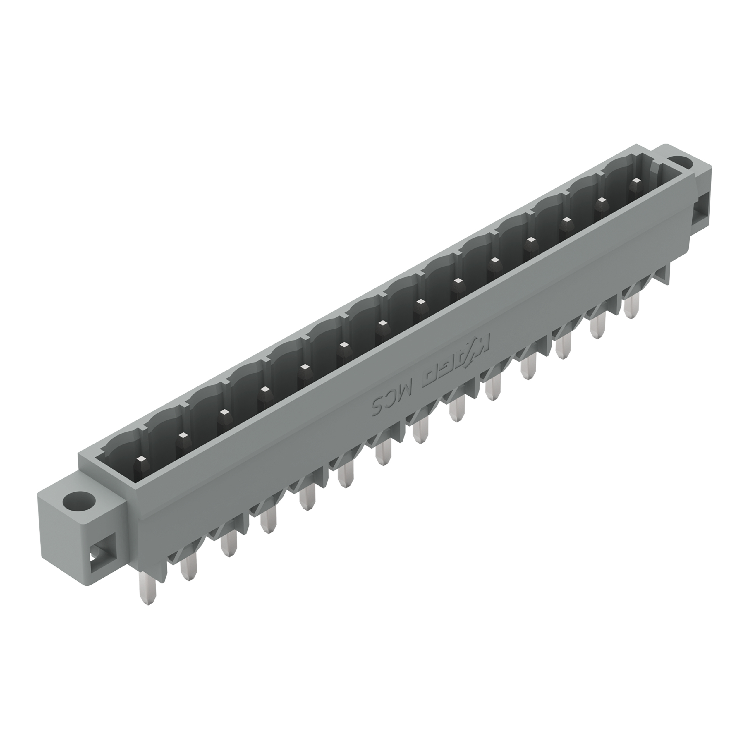 wtyk THT; pin lutowniczy 1,2 x 1,2 mm; konstrukcja prosta; kołnierz mocujący; raster 5 mm; 14-bieg.; szary