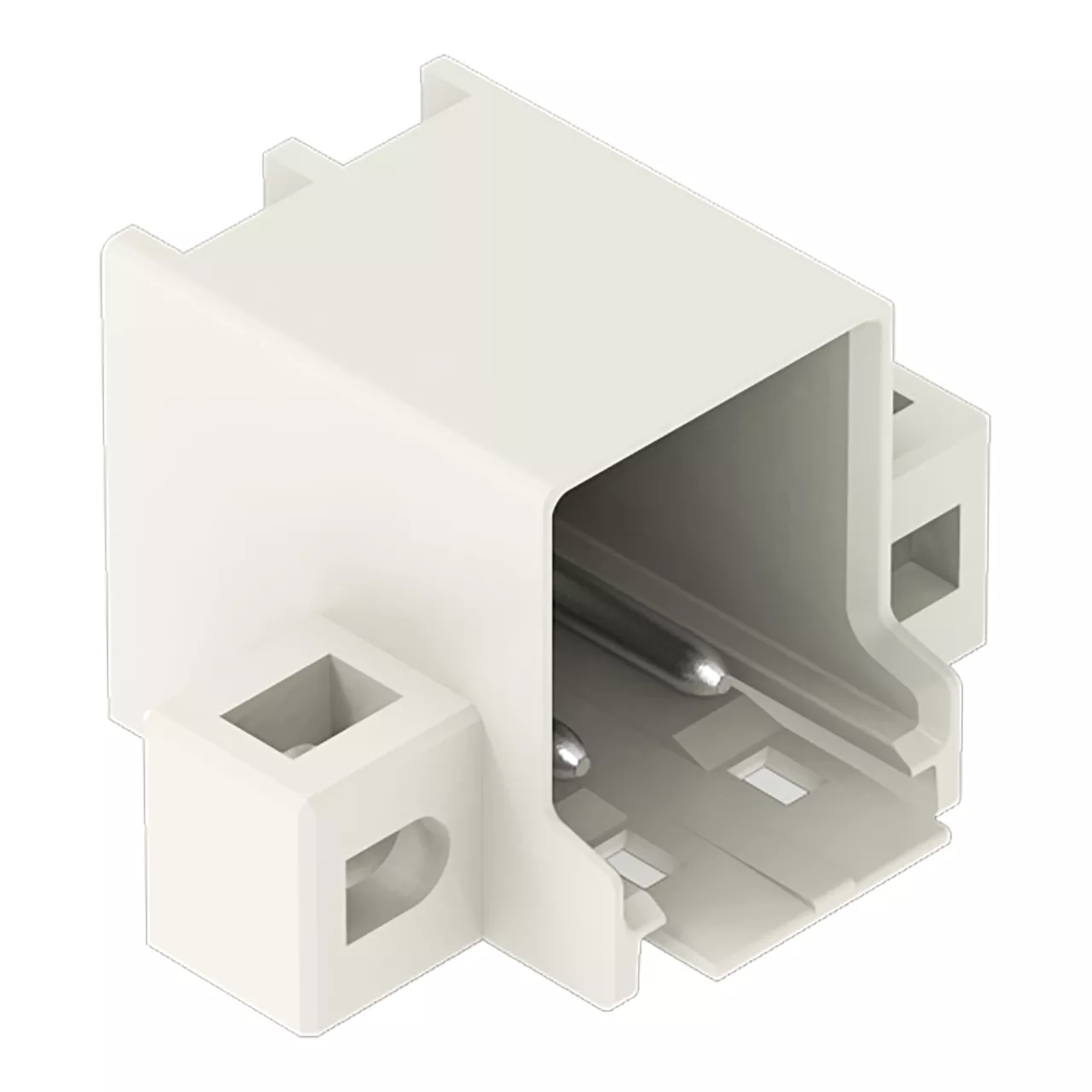 wtyk THT; pin lutowniczy Ø 1,4 mm; konstrukcja kątowa; kołnierz mocujący; raster 5 mm; 2-bieg.; jasnoszary