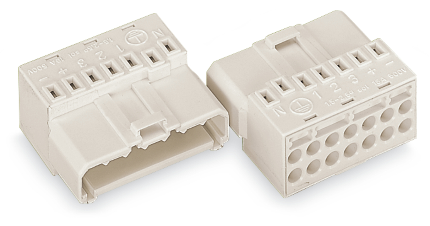 wtyk z możliwością podłączenia blaszki styku PE; bez styku PE; 7-bieg.; 2,50 mm²; biały