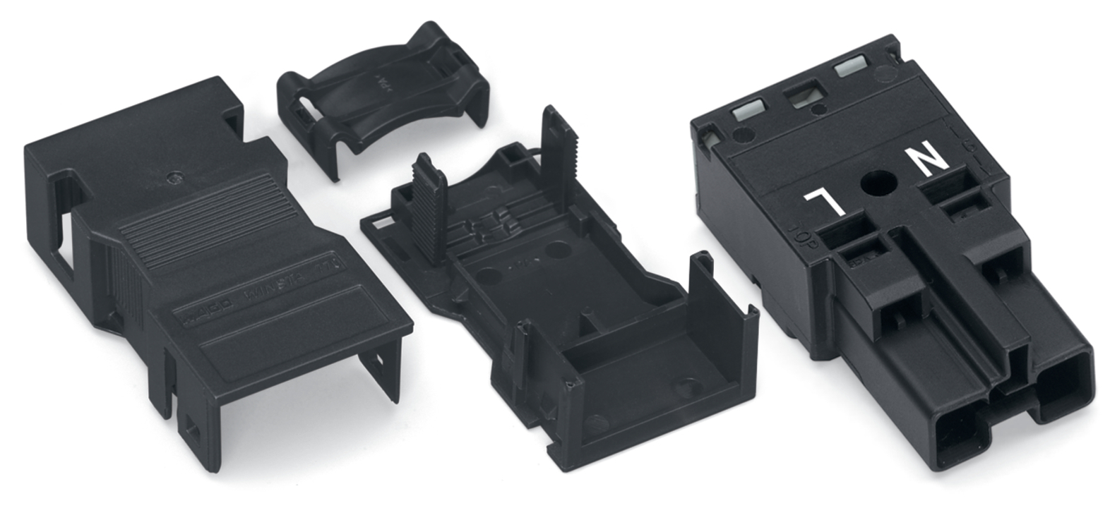 Wtyk z obudową odciążającą przewody 2-bieg., czarny 770-112/041-000