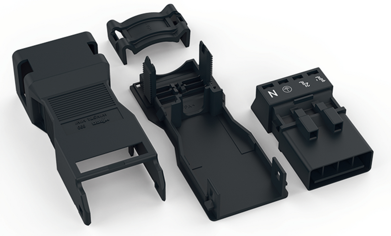 Wtyk z obudową odciążającą przewody 4-bieg., czarny 890-114