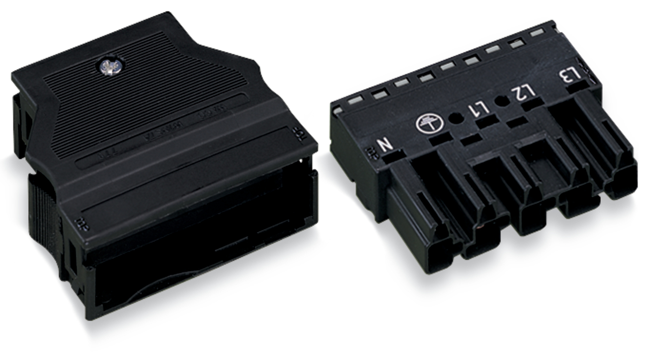 Wtyk z obudową odciążającą przewody 5-bieg., czarny 770-315