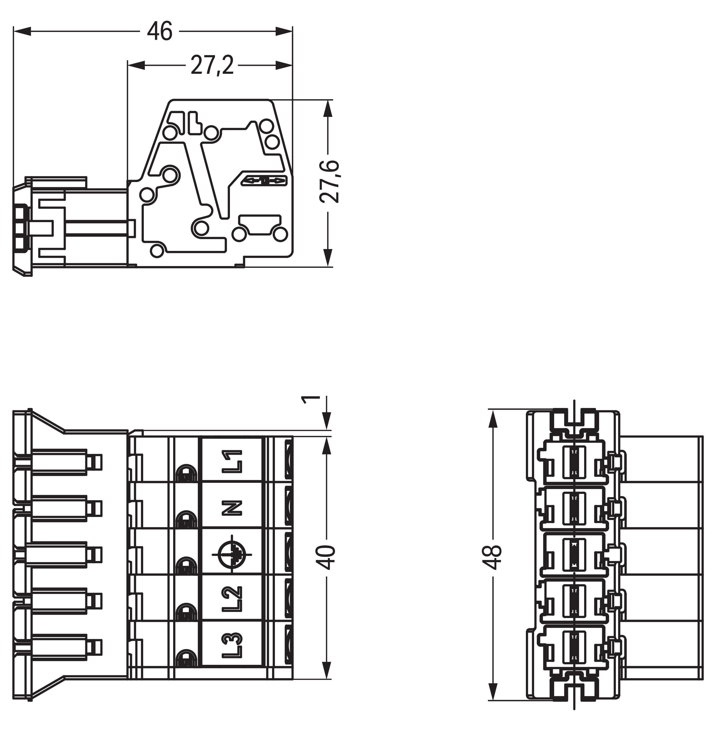 Wtyk z obudową odciążającą przewody 5-bieg., czarny 831-3205/1020-004