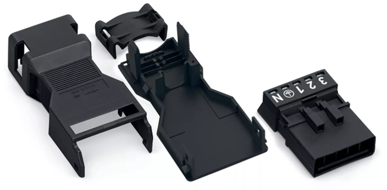 Wtyk z obudową odciążającą przewody 5-bieg., czarny 890-115