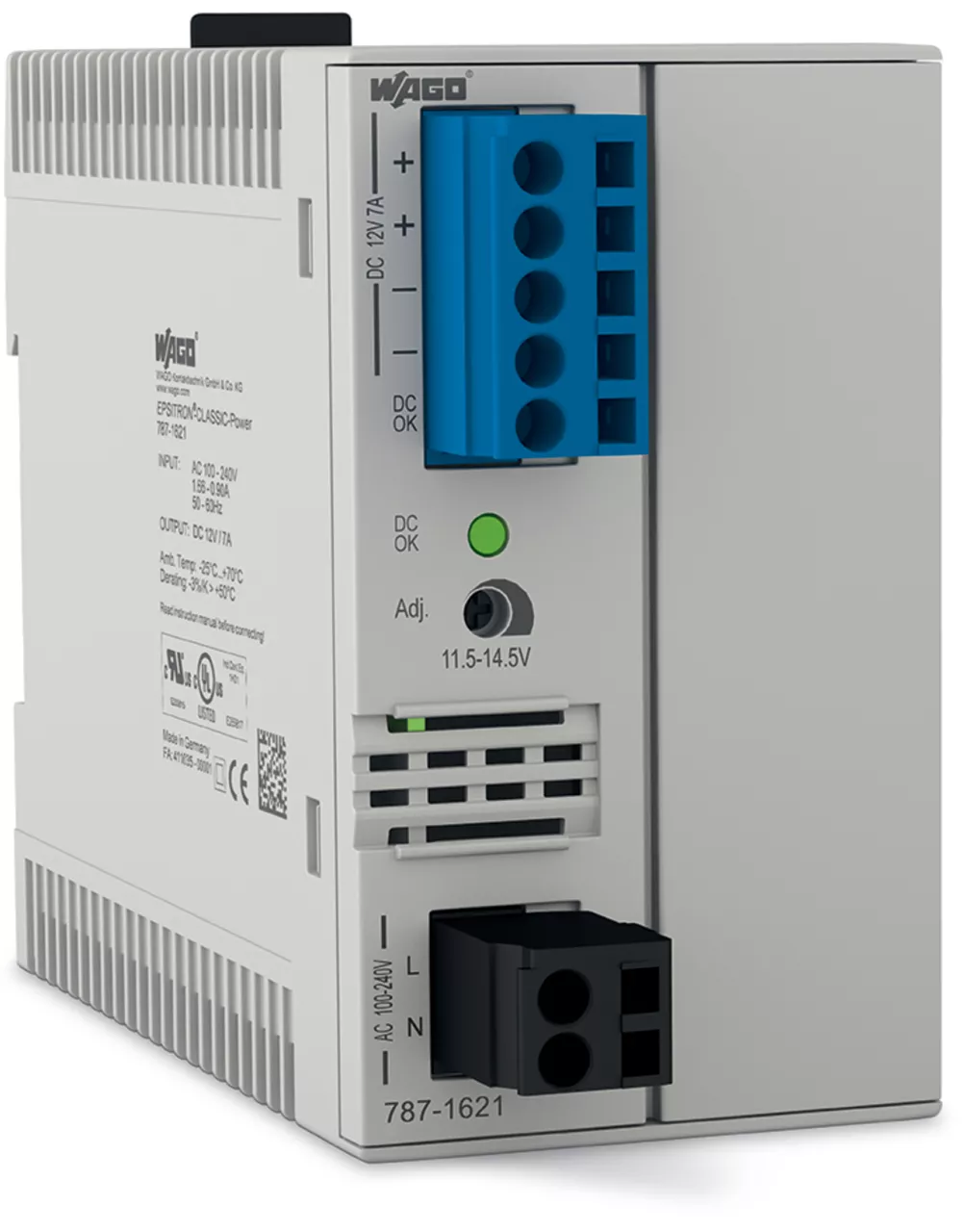 zasilacz impulsowany po stronie pierwotnej; Classic; 1-faz.; napięcie wyjściowe 12 V DC; prąd wyjściowy 7 A; sygnał DC OK