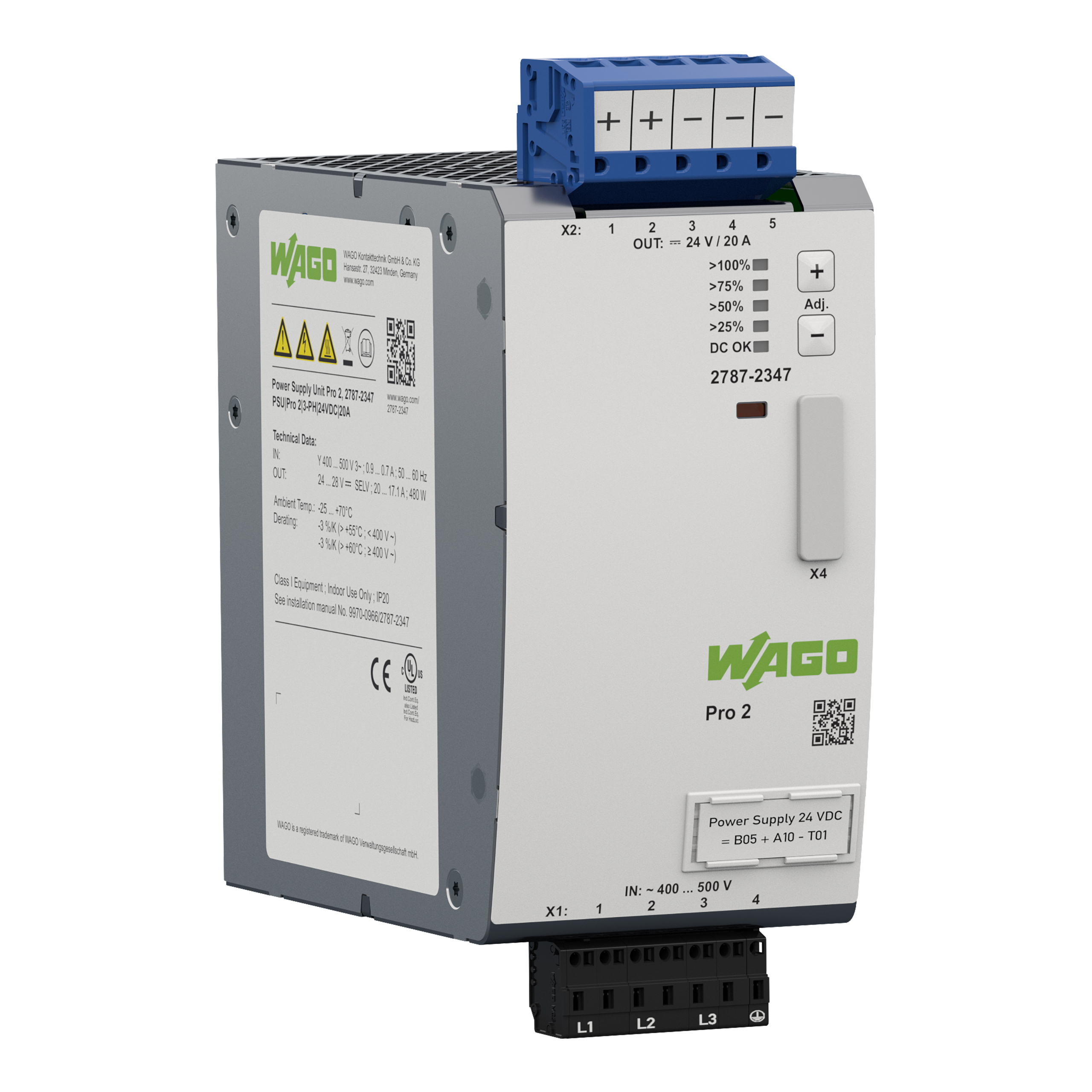 Zasilacz; Pro 2; 3-fazowy; napięcie wyjściowe 24 V DC; prąd wyjściowy 20 A; TopBoost + PowerBoost; z możliwością komunikacji 2787-2347