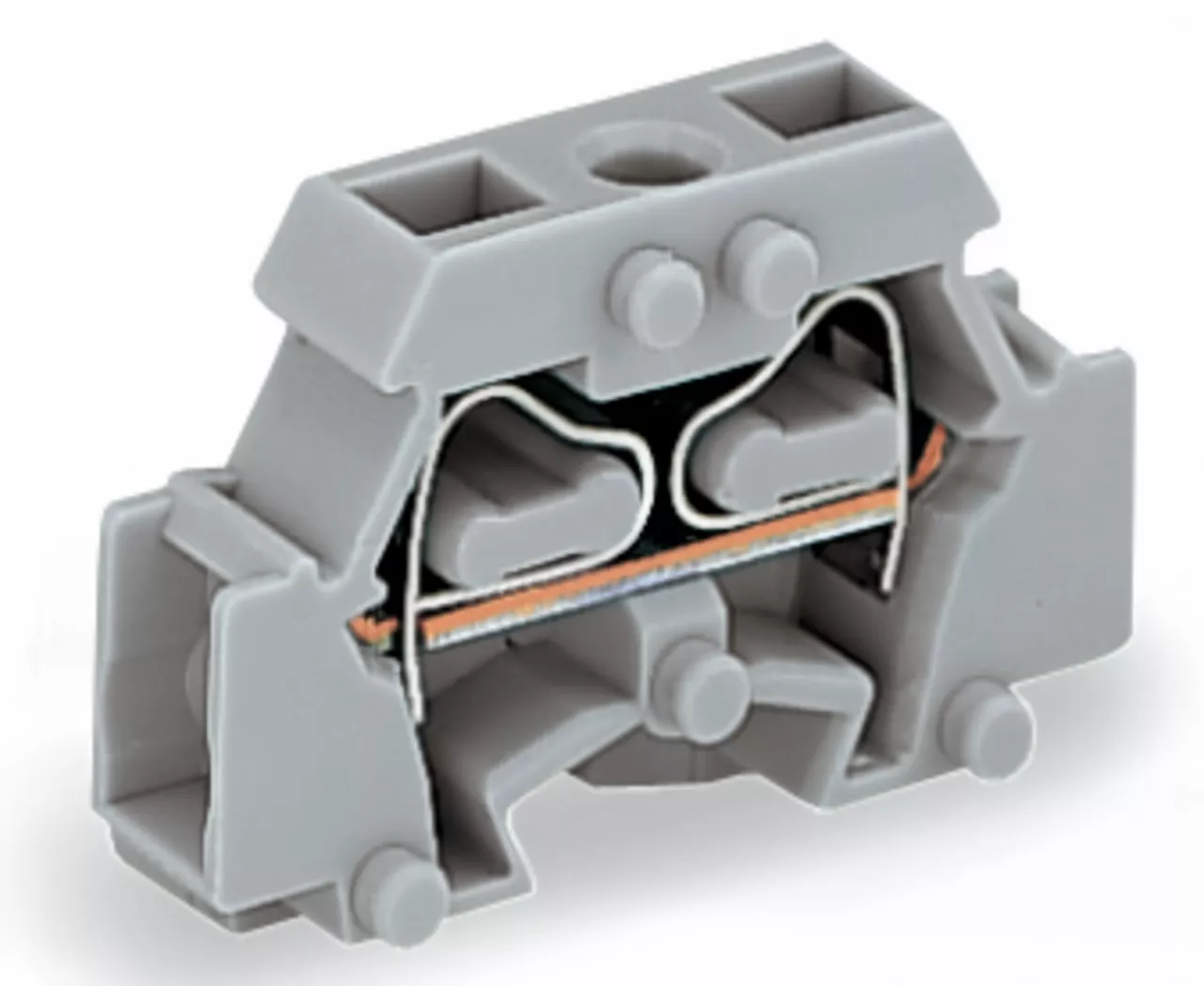 złączka 2-przewodowa; bez przycisków; z uchwytem montażowym; 1-bieg.; do mocowania śrubowego i podobnego typu; otwór montażowy Ø 3,2 mm; 2,5 mm²; CAGE CLAMP®; 2,50 mm²; szary