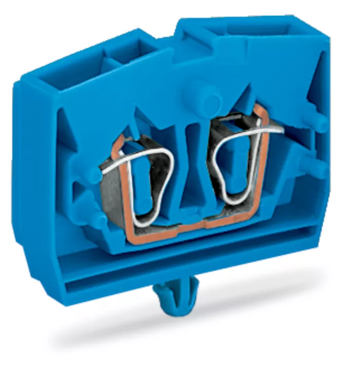 złączka 2-przewodowa; bez przycisków; do zastosowań Ex i; ze stopką zatrzaskową; 1-bieg.; do płyty o grubości 0,6 ... 1,2 mm; otwór montażowy Ø 3,5 mm; 2,5 mm²; CAGE CLAMP®; 2,50 mm²; niebieski
