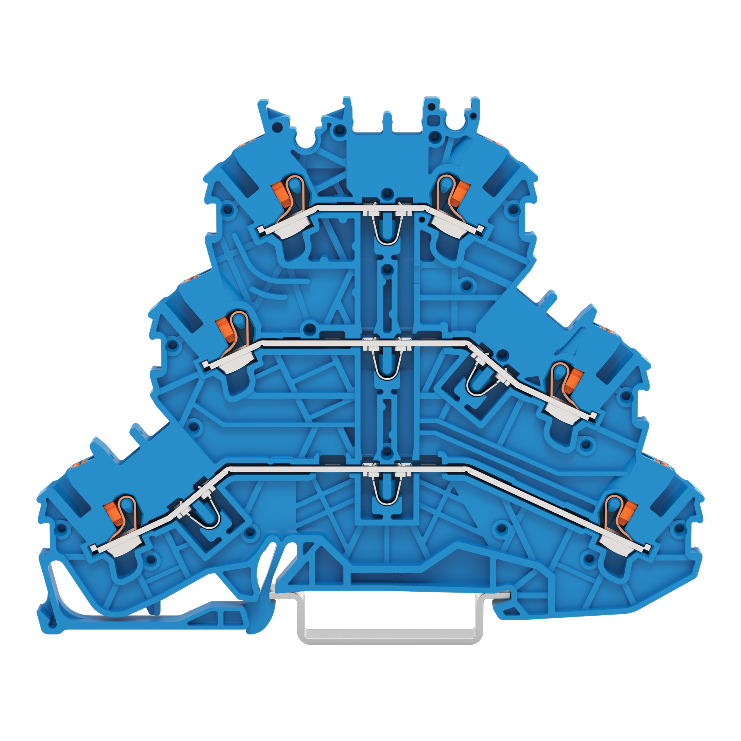 złączka 3-piętrowa; z przyciskami; złączka przelotowa/przelotowa/przelotowa; N/N/N; bez podstawki oznacznika; do zastosowań Ex e II; na szynę TS 35 x 15 i 35 x 7,5; 1 mm²; Push-in CAGE CLAMP®; 1,00 mm²; niebieski