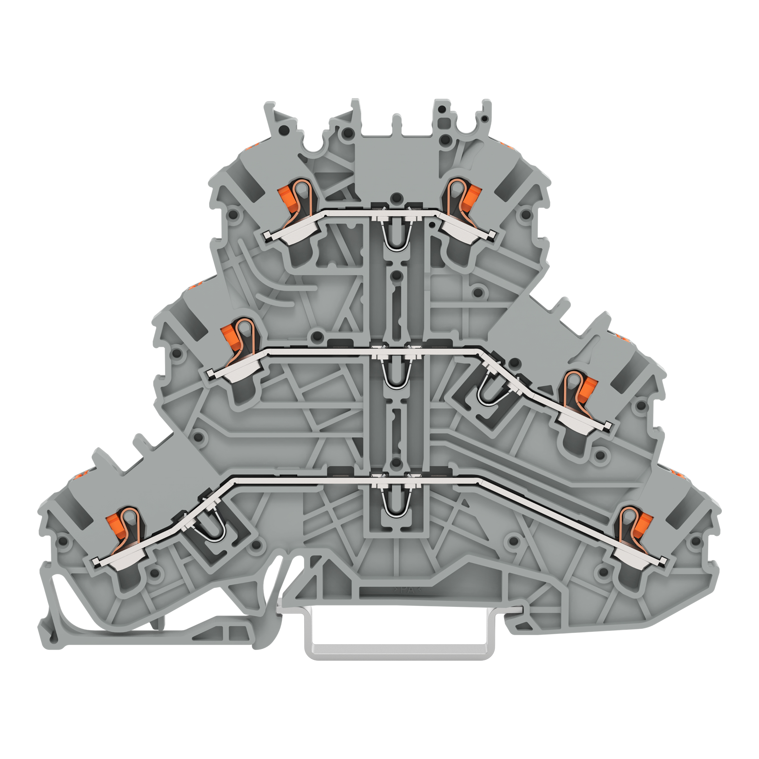 złączka 3-piętrowa; z przyciskami; złączka przelotowa/przelotowa/przelotowa; L/L/L; bez podstawki oznacznika; do zastosowań Ex e II; na szynę TS 35 x 15 i 35 x 7,5; 1 mm²; Push-in CAGE CLAMP®; 1,00 mm²; szary