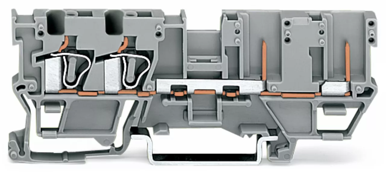 złączka bazowa 2-przewodowa/2-pinowa; na szynę TS 35 x 15 i 35 x 7,5; 4 mm²; CAGE CLAMP®; 4,00 mm²; szary