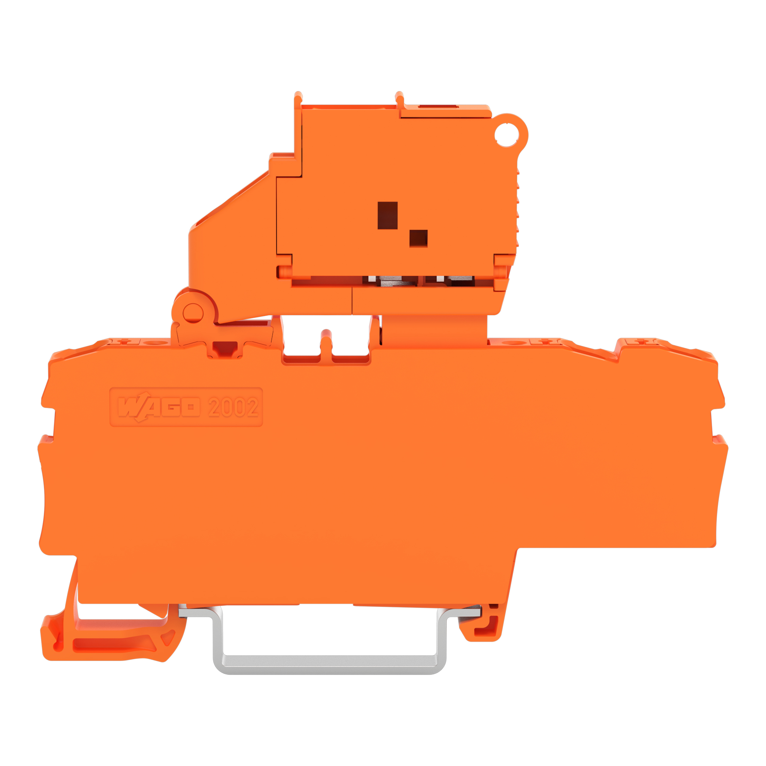 Złączka bezpiecznikowa 3-przewodowa z uchylną podstawką bezpiecznika ze ścianką końcową, pomarańczowy 2202-1712/1000-867