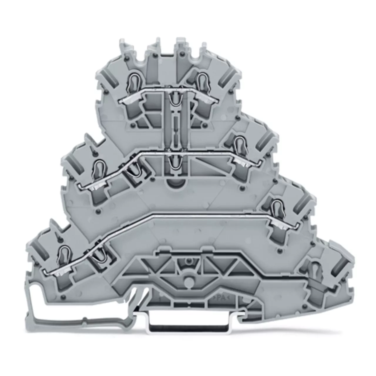 złączka 4-piętrowa; złączka do silników elektrycznych; L1 - L2 - L3; bez podstawki oznacznika; do zastosowań Ex e II; na szynę TS 35 x 15 i 35 x 7,5; 2,5 mm²; Push-in CAGE CLAMP®; 2,50 mm²; szary