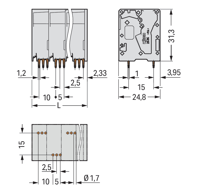 Złączka do płytek drukowanych 16 mm² RM 10 mm 8-bieg, szara 2636-3108/020-000