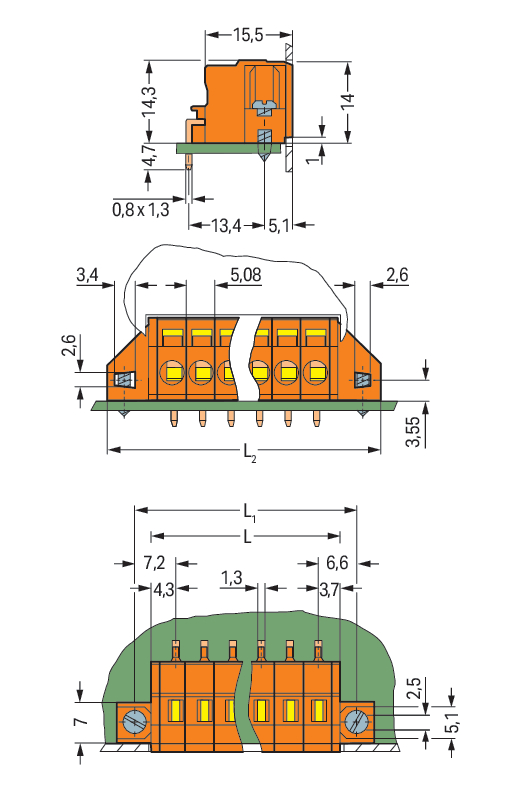 Złączka do płytek drukowanych 2,5 mm² RM 5,08 mm 2-bieg, pomarańczowa 231-632/023-000