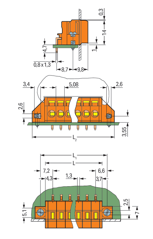 Złączka do płytek drukowanych 2,5 mm² RM 5,08 mm 8-bieg, pomarańczowa 231-638/017-000