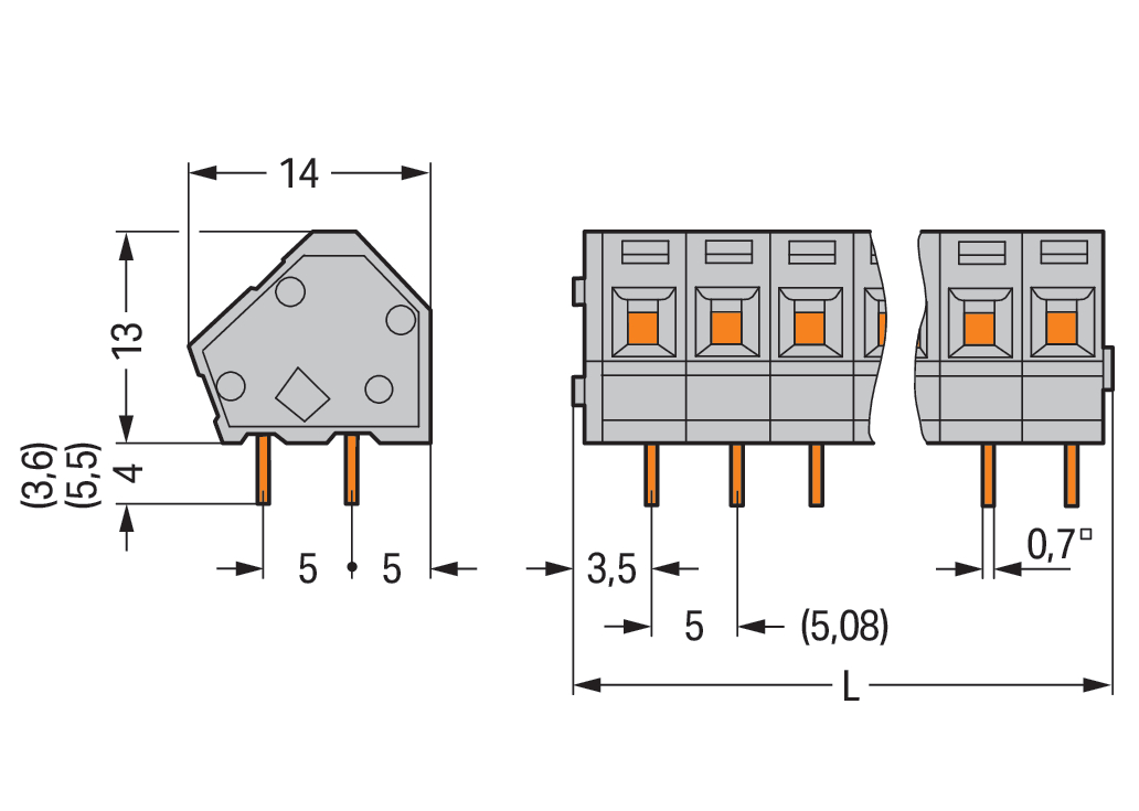 Złączka do płytek drukowanych 2,5 mm² RM 5/5,08 mm 48-bieg, szara 236-448