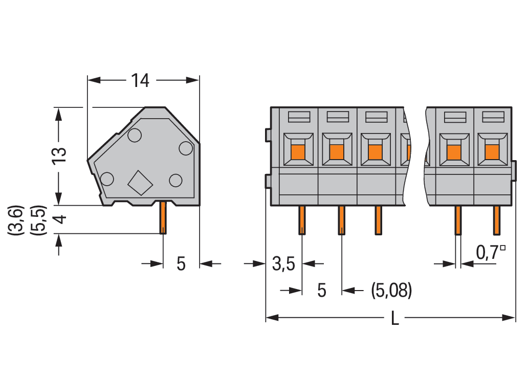 Złączka do płytek drukowanych 2,5 mm² RM 5/5,08 mm 7-bieg, szara 236-107
