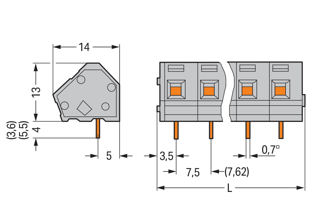 Złączka do płytek drukowanych 2,5 mm² RM 7,5/7,62 mm 4-bieg, szara 236-204
