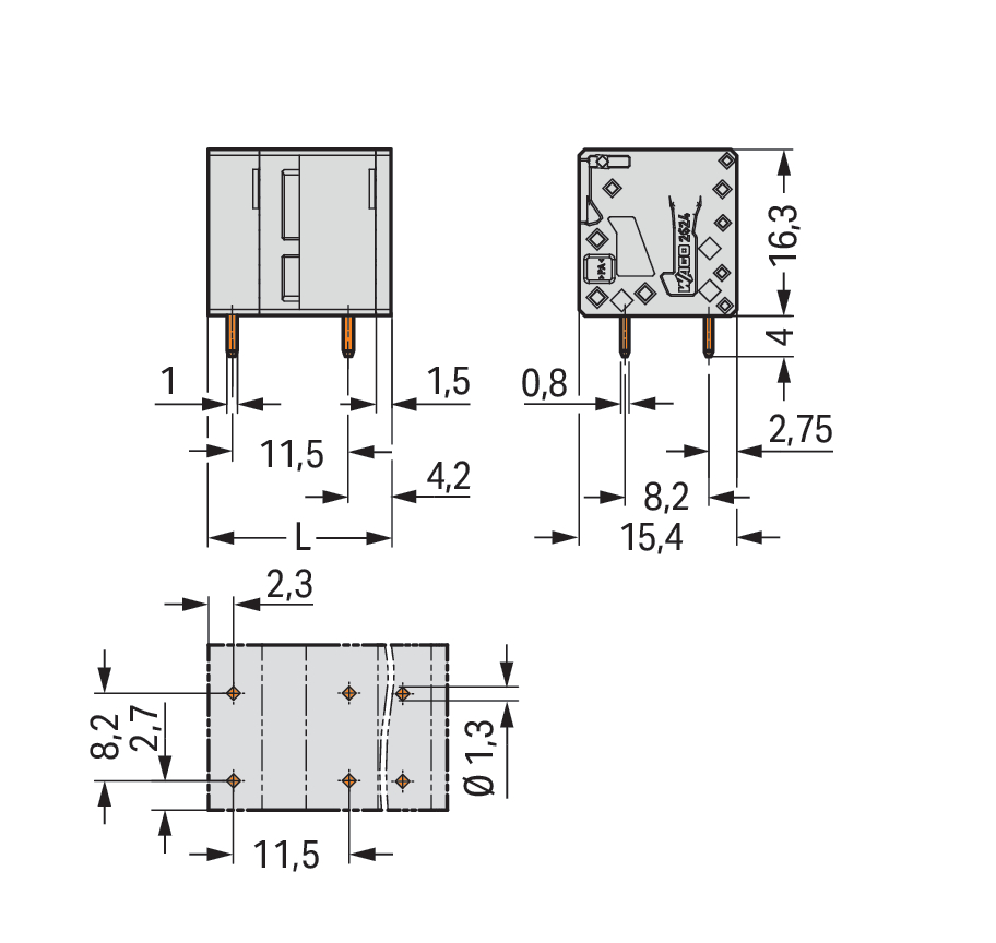 Złączka do płytek drukowanych 4 mm² raster 11,5mm 4-bieg, szara 2624-3504