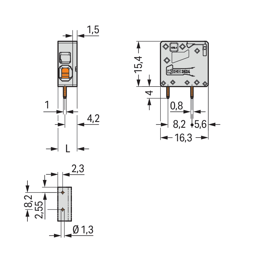 | Kąt płyta drukowana / przewód: |