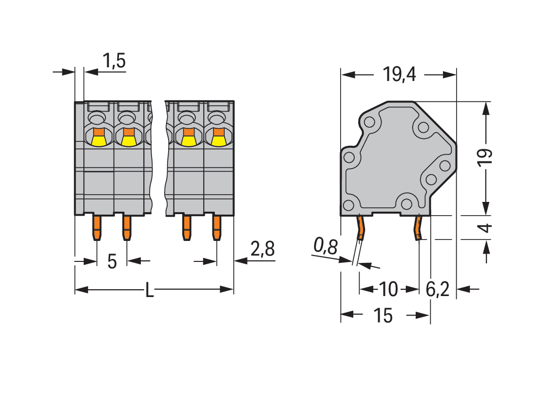 Złączka do płytek drukowanych 4 mm² RM 5 mm 9-bieg, szara 745-3109