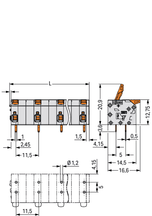 złącze do PCB; dźwignia; 1,5 mm²; raster 11,5 mm; 8-bieg.; Push-in CAGE CLAMP®; 1,50 mm²; szary