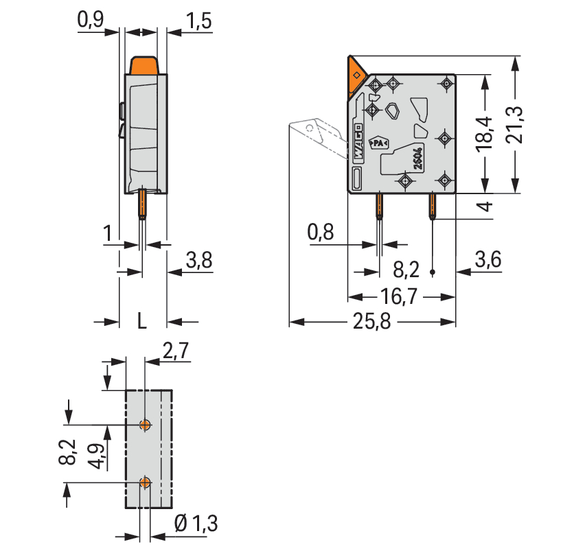 Kąt płyta drukowana / przewód: