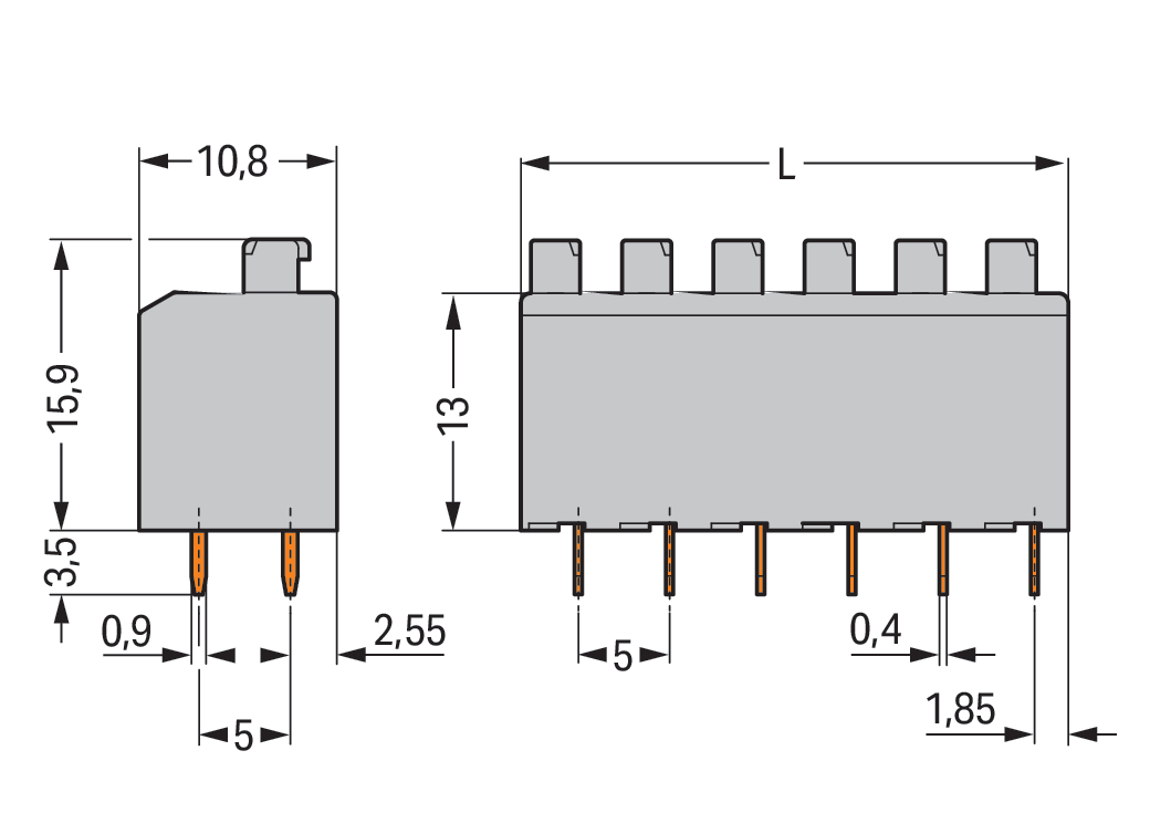 Złączka do płytek drukowanych przycisk 1,5 mm² RM 5 mm 3-bieg, szara 735-303