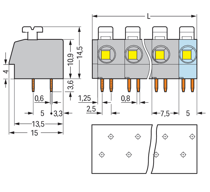 Złączka do płytek drukowanych przycisk 2,5 mm² RM 7,5 mm 3-bieg, szara 804-303