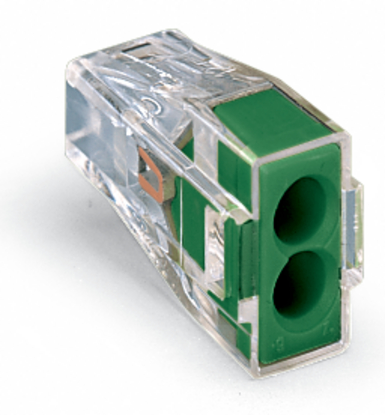 złączka do puszek instalacyjnych; do przewodów jedno- i wielodrutowych; maks. 2,5 mm²; 2-przew.; kolor obudowy przezroczysty; kolor pokrywy: zielony; temperatura otoczenia maks. 60°C; 2,50 mm²; transparentny