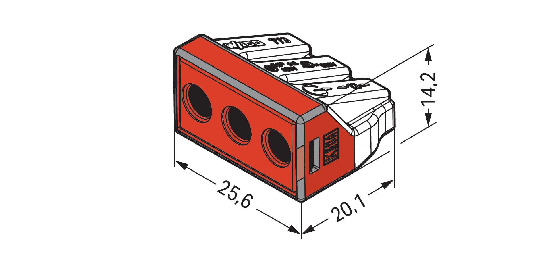 złączka do puszek instalacyjnych; do przewodów jedno- i wielodrutowych; maks. 6 mm²; 3-przew.; kolor obudowy przezroczysty; kolor pokrywy czerwony; temperatura otoczenia maks. 60°C; 6,00 mm²; transparentny