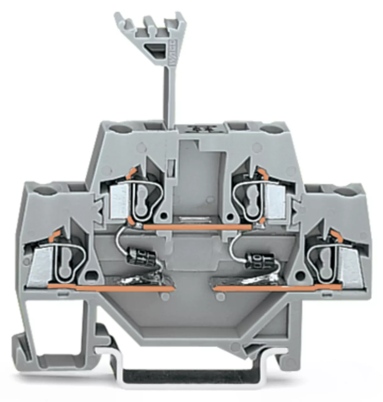 złączka do zabudowy elementów; 2-piętr.; z 2 diodami 1N4007; anody na dole; na szynę TS 35 x 15 i 35 x 7,5; 2,5 mm²; CAGE CLAMP®; szary