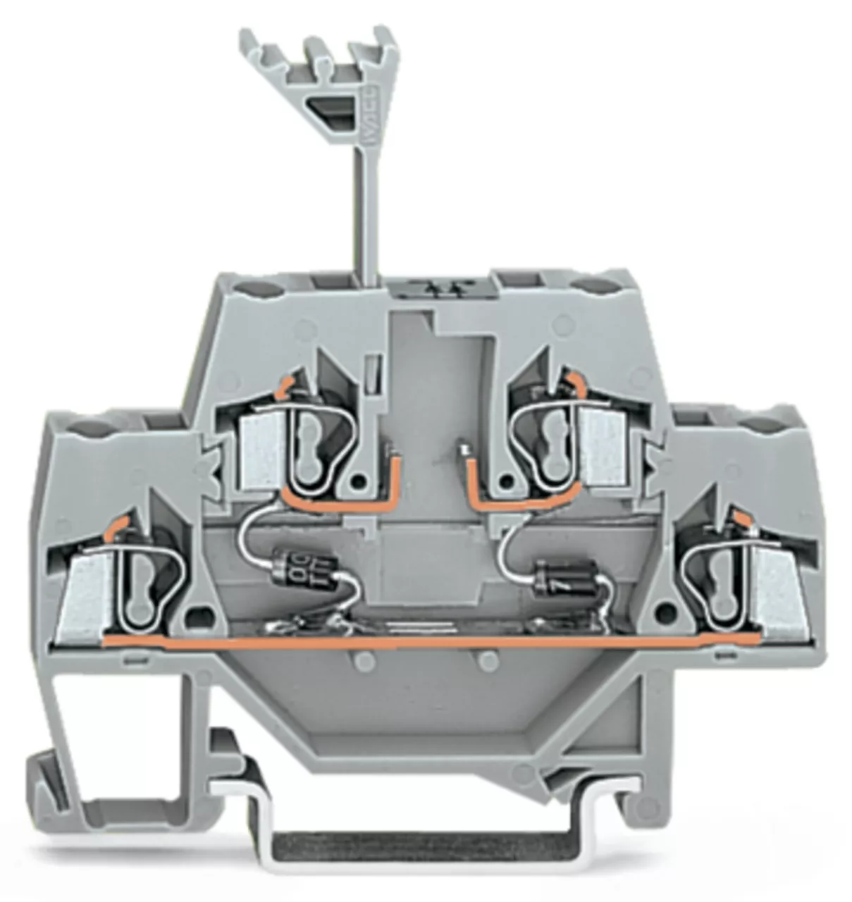 złączka do zabudowy elementów; 2-piętr.; z 2 diodami 1N4007; anody na dole; na szynę TS 35 x 15 i 35 x 7,5; 2,5 mm²; CAGE CLAMP®; szary