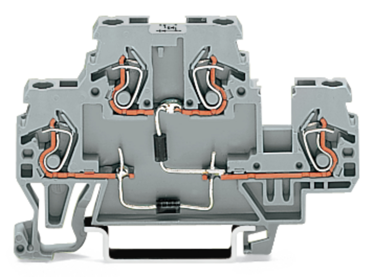 złączka do zabudowy elementów; 2-piętr.; z 2 diodami 1N4007; anoda na górze, anoda po lewej; na szynę TS 35 x 15 i 35 x 7,5; 2,5 mm²; CAGE CLAMP®; szary