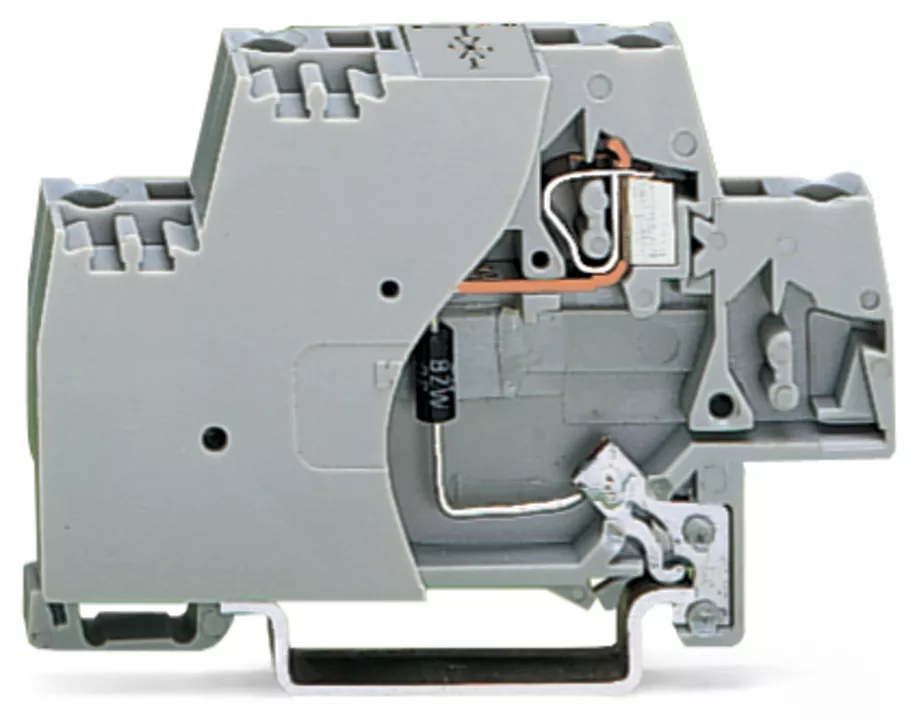 złączka do zabudowy elementów; 2-piętr.; ze ścianką końcową i bezpośrednim połączeniem z szyną montażową; z diodą transil 1.5KE-C; 115 V AC; na szynę TS 35 x 15 i 35 x 7,5; 2,5 mm²; CAGE CLAMP®; szary