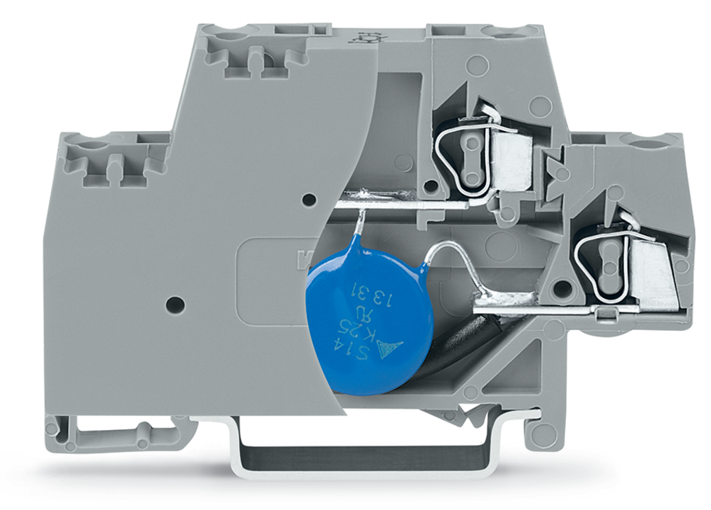 złączka do zabudowy elementów; 2-piętr.; ze ścianką końcową; z warystorem; na szynę TS 35 x 15 i 35 x 7,5; 2,5 mm²; CAGE CLAMP®; szary