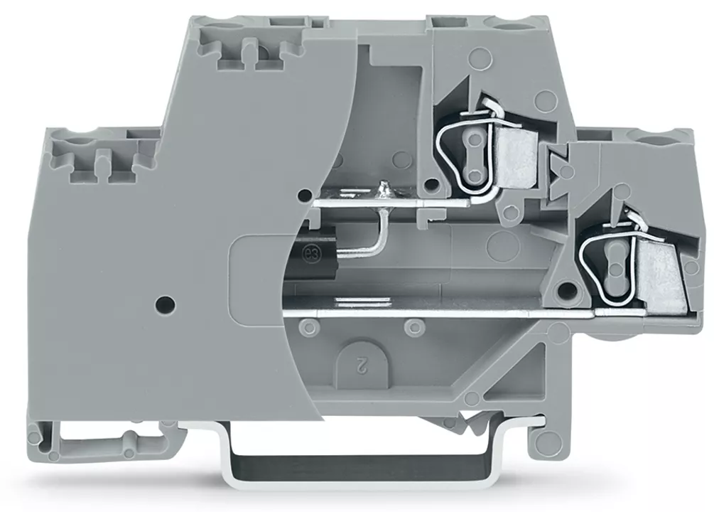 złączka do zabudowy elementów; 2-piętr.; ze ścianką końcową; z diodą transil 1.5KE-C; 230 V AC; na szynę TS 35 x 15 i 35 x 7,5; 2,5 mm²; CAGE CLAMP®; szary
