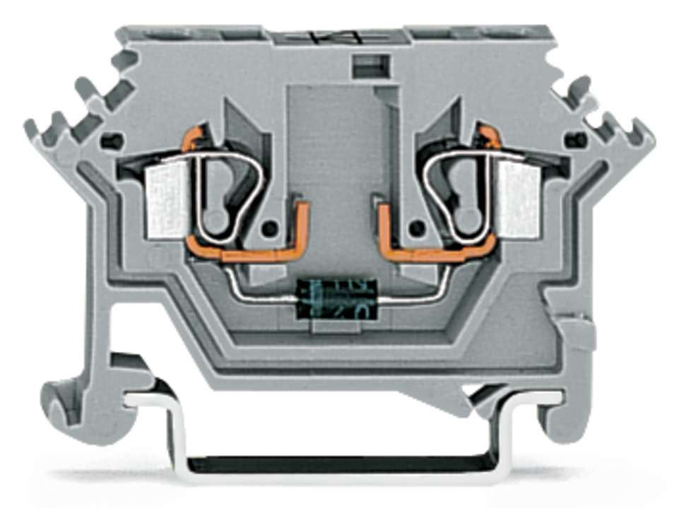 złączka do zabudowy elementów; 2-przew.; z diodą 1N4007; anoda po prawej; na szynę TS 35 x 15 i 35 x 7,5; 2,5 mm²; CAGE CLAMP®; szary